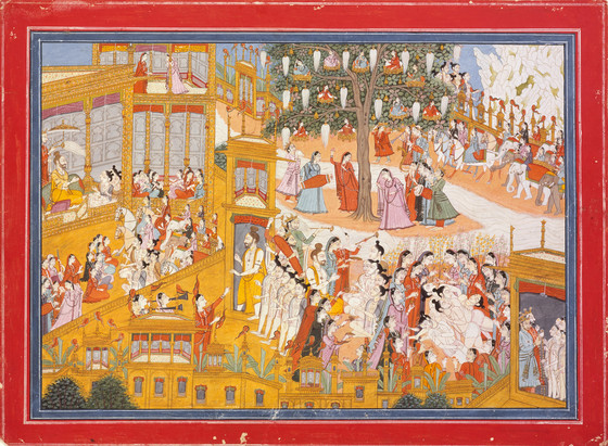 The Five Pilgrims Witness Wondrous Sights in the City of King Shankha-Pal, Folio from the “Large” Kedara Kalpa (Book of Kedara)
