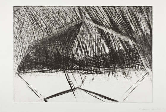 One-color drypoint (drawn with scribe, roulette, and file) on Rives BFK paper, printed in one run from one copper plate