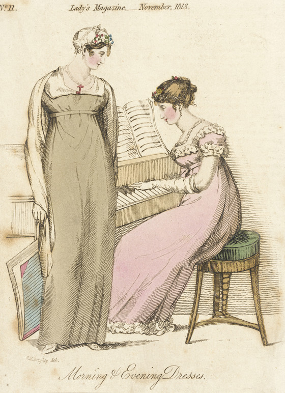 Fashion Plate, 'Morning and Evening Dresses' for 'Lady's Magazine'