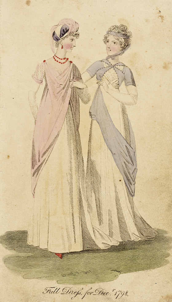 Fashion Plate, 'Full Dress for Decr. 1798' for 'Lady's Monthly Museum'
