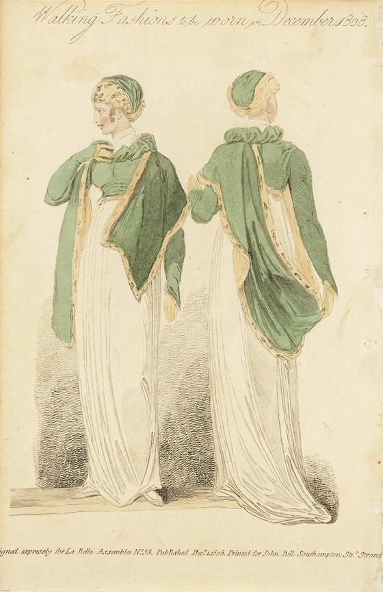 Fashion Plate, 'Walking Fashions to be worn in December 1808' for 'La Belle Assemblée'