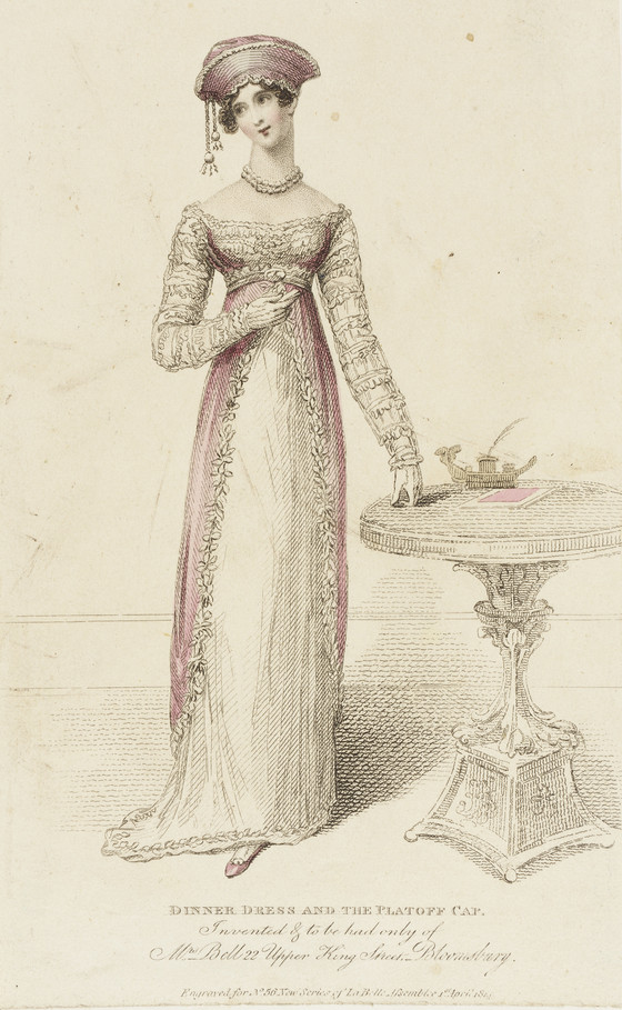 Fashion Plate, 'Dinner Dress and the Platoff Cap' for 'La Belle Assemblée'