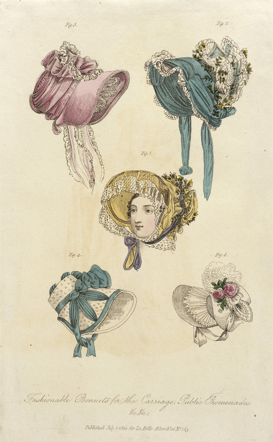 Fashion Plate (Fashionable Bonnets for the Carriage, Public Promenades)