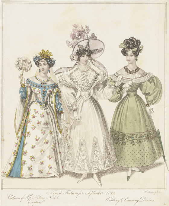 Fashion Plate, 'Costumes of All Nations, Venitian Walking & Evening Dresses' for 'The World of Fashion and Continental Feuilletons'