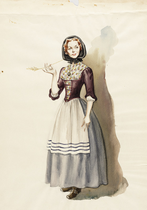 Costume Sketch of Claudette Colbert as Lana Martin in the 20th Century Fox Production, 'Drums Along the Mohawk'