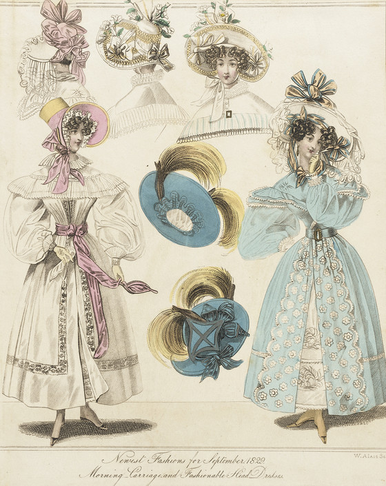 Fashion Plate, 'Morning-Carriage and Fashionable Head Dresses' for 'The World of Fashion and Continental Feuilletons'