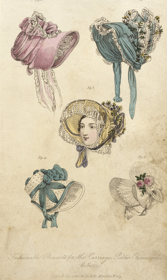 Fashion Plate, 'Fashionable Bonnets for the Carriage & Public Promenades' for 'La Belle Assemblée'