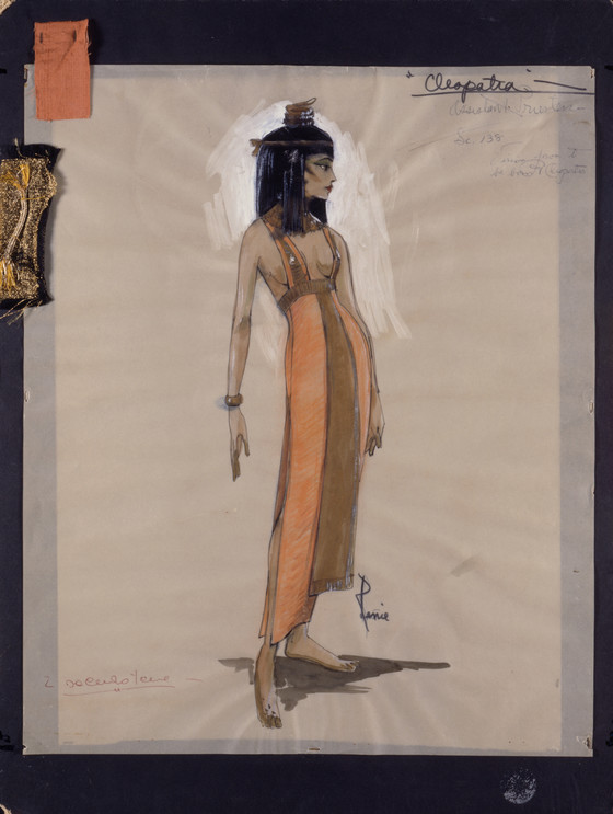 Costume Sketch of Assistant Priestess of the Nile in the Twentieth Century-Fox Film 'Cleopatra' with Swatch