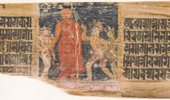 Ink and opaque watercolor on palm leaf