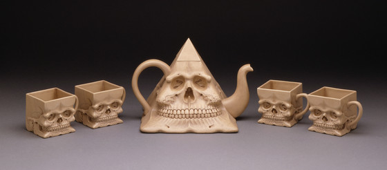 Pyramidal Skeleton Teapot and Four Cube Skull Cups