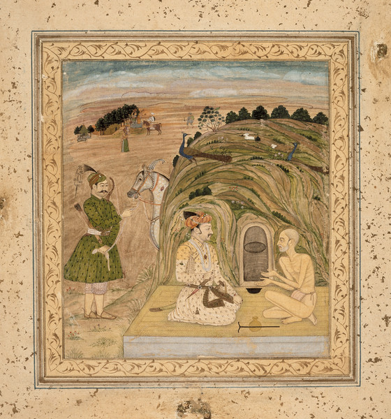 Emperor Jahangir (r. 1605-1627) Visiting the Ascetic Jadrup (recto), Calligraphy (verso)