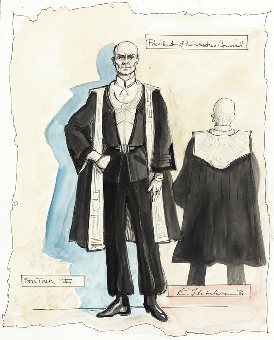 Costume Sketch of Robert Ellenstein as President of the Federation Council for the Paramount Pictures Production of 'Star Trek IV: The Voyage Home'
