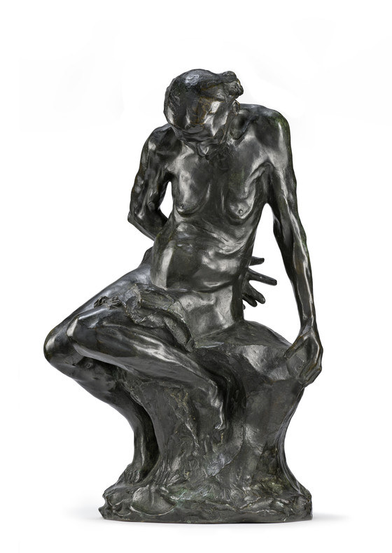 Another early gift, a bronze Female Centaur, came with the de Sylva collection, which was primarily devoted to Impressionist art. Rodin suggested one interpretation of this figure as the struggle between the soul and the earthbound body in which it is trapped. Beginning with a model for an equestrian monument, Rodin grafted to it part of another figure known as Despairing Youth, but transformed this into an elongated female torso, full of dramatic élan and reaching imploringly into space.