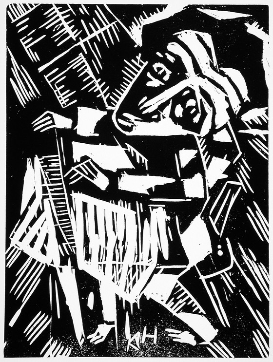 Woman Seated at Table with Cat and Fish (Am Tisch sitzende Frau mit Katze und Fisch)