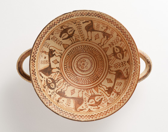 Black-Figure Cup with (A and B) Man (Herakles?) and Centaurs and (Tondo) Gorgoneion