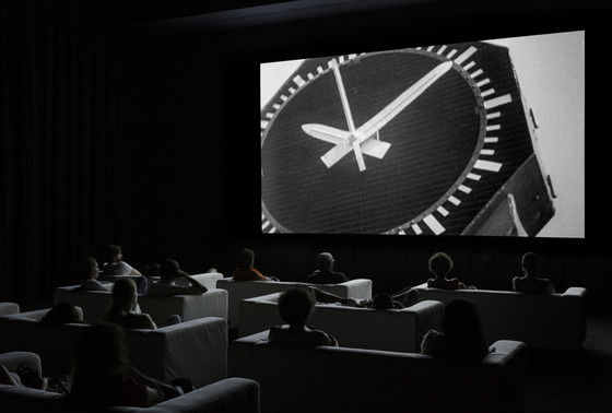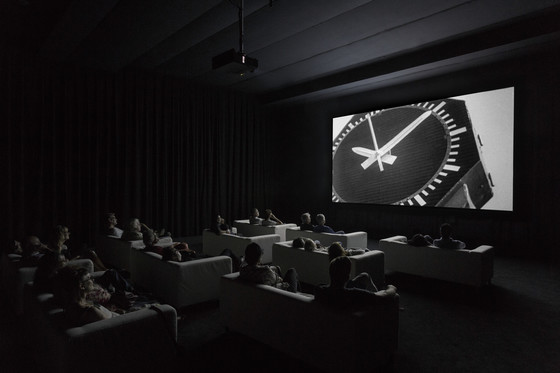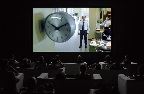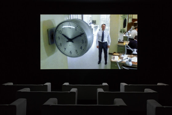 Since its premiere in London in October 2010, followed by its debut in New York February 2011, The Clock (2010) has been praised as a true masterpiece. Winner of the Golden Lion at the 54th Venice Biennale (2011), this twenty-four-hour single-channel montage is constructed out of moments in cinema and television history depicting the passage of time, in other words, scenes in which clocks and watches – “from clock towers to wristwatches and from buzzing alarm clocks to the occasional cuckoo” – appear. The Clock weaves together Marclay’s interests in collage and found visual and aural artifacts with his own roots in performance art. In this respect, the viewers become enmeshed in a durational performance piece.