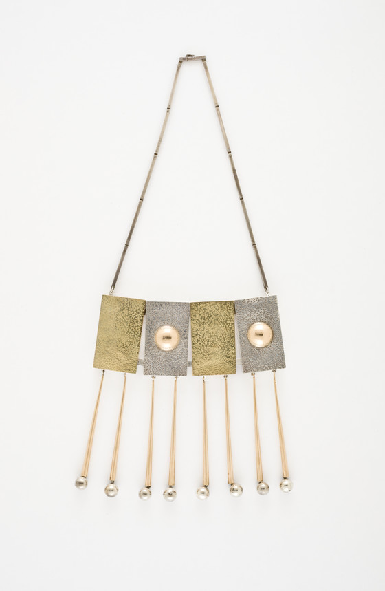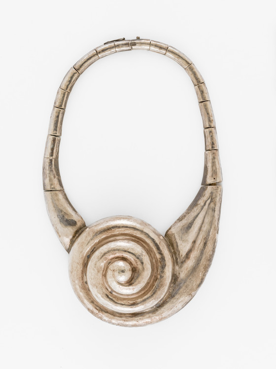 Graziella Laffi's jewelry and hollowware reflect the convergence of pre-Columbian imagery and techniques and modern design. Born in Florence, Italy, Laffi studied drawing, painting, and architecture before turning her attention to silversmithing. In 1947, following the throes of World War II, Laffi emmigrated with her parents to Peru. Profoundly fascinated by her adoptive country, she traveled extensively throughout the region, studying many of its antiquities. Significantly, when Laffi arrived in Peru, the country was deeply engaged in a search for its own artistic identity and the proposal to create a national, modern visual vocabulary rooted in pre-Columbian motifs.