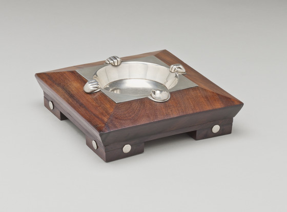 Wood and Silver Ashtray with Fists (Cenicero de plata y madera con puños)