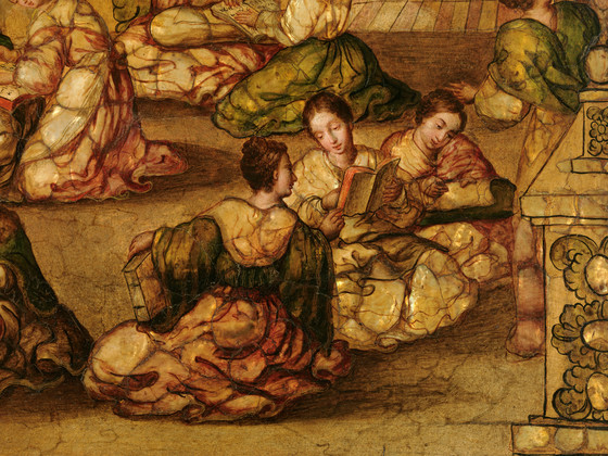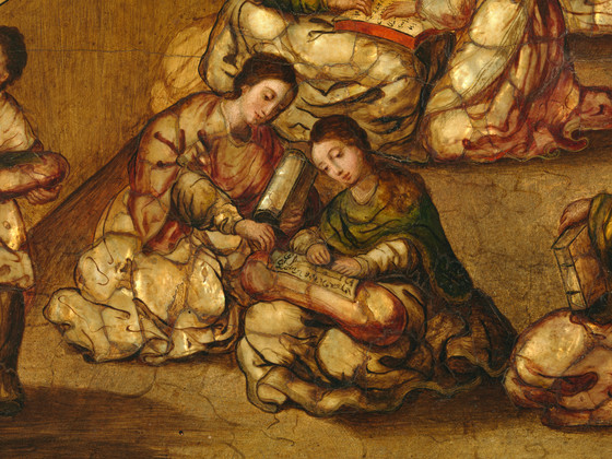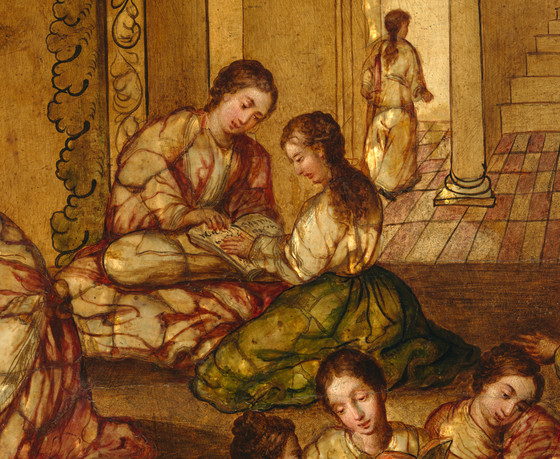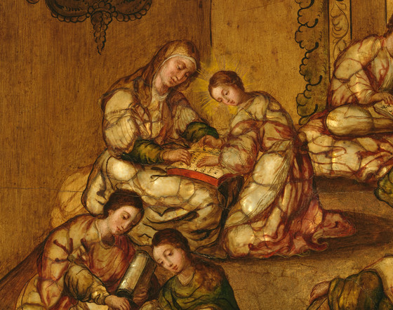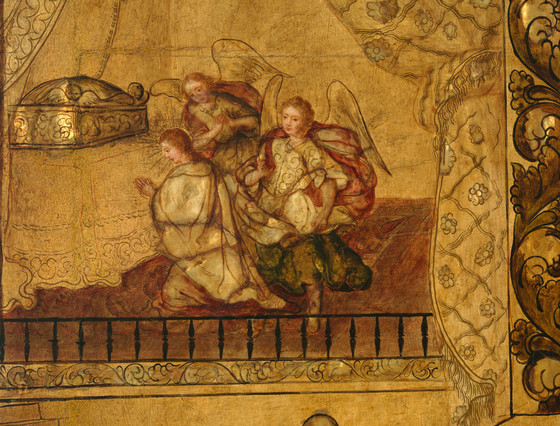 Oil on canvas on wood, inlaid with mother-of-pearl (enconchado)
