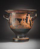 Attic Red-Figure Bell-Krater with (A) Unexplained Scene (Two Satyrs Reclining before a Colossal Couch) and (B) Three Youths