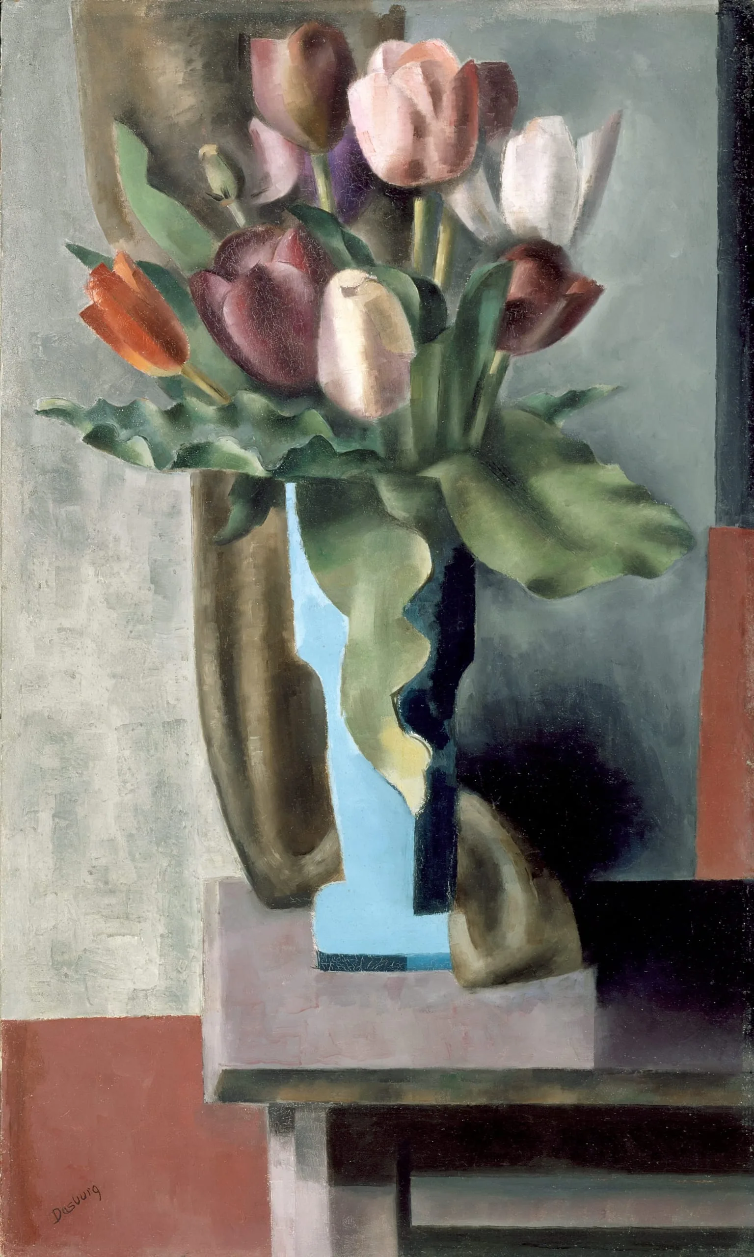 Since its showing in the First Pan-American Exhibition of Oil Paintings in the winter of 1925-26 the painting has been given a date of 1923. In an inventory compiled years later, Dasburg, somewhat hesitantly, dated it 1924. Either date could be correct, since Dasburg demonstrated his strongest interest in cubism at this time. He even published an article on cubism (Arts 4 November 1923]: 278-84). Tulips is a classic example of Dasburg’s interpretation of the aesthetic, for he defined cubism as "a kind of architectonic paraphrase of a motif" In his geometric shapes, flattening of objects and space, and jigsaw puzzle composition, Dasburg clearly acknowledged his debt to synthetic cubism.