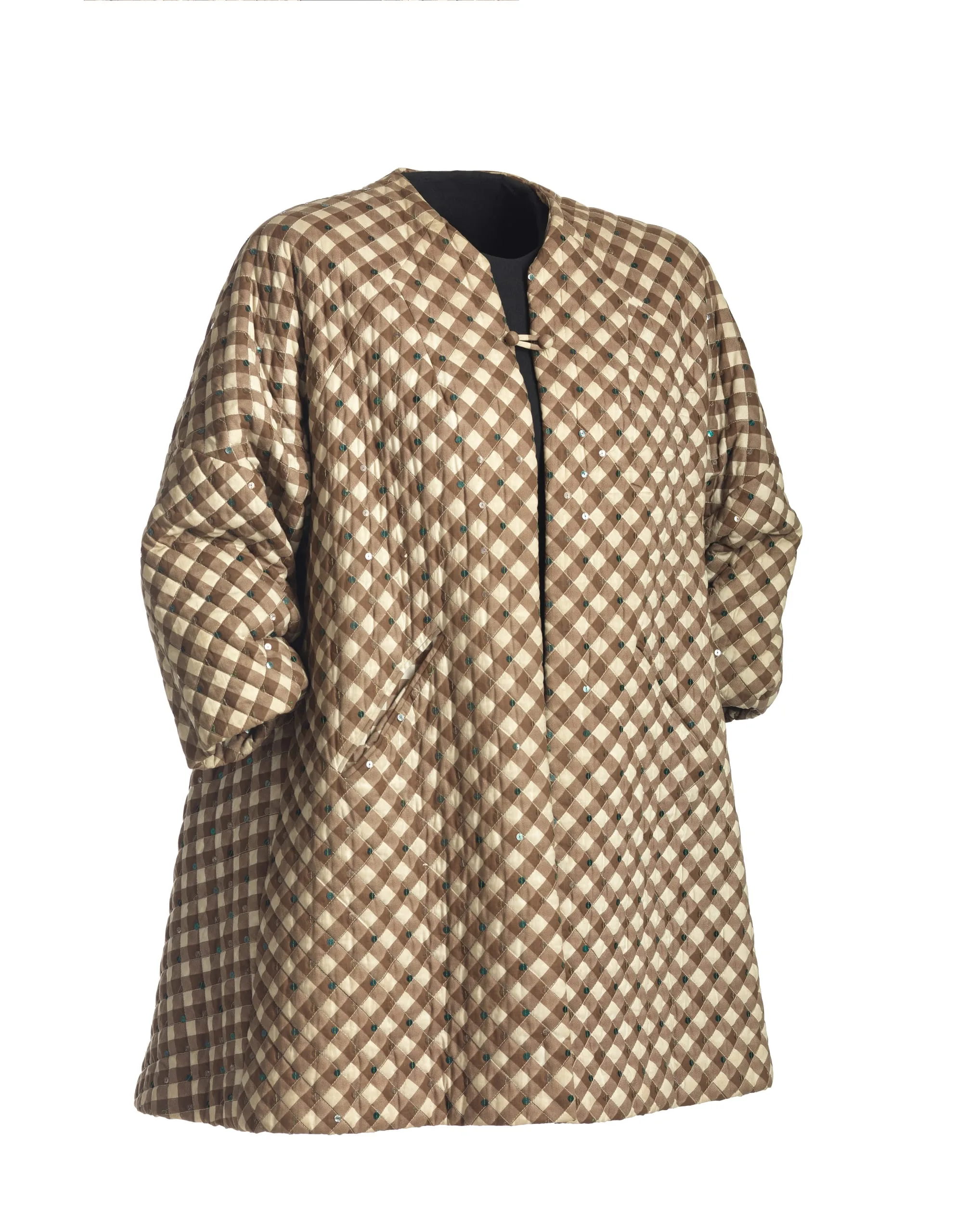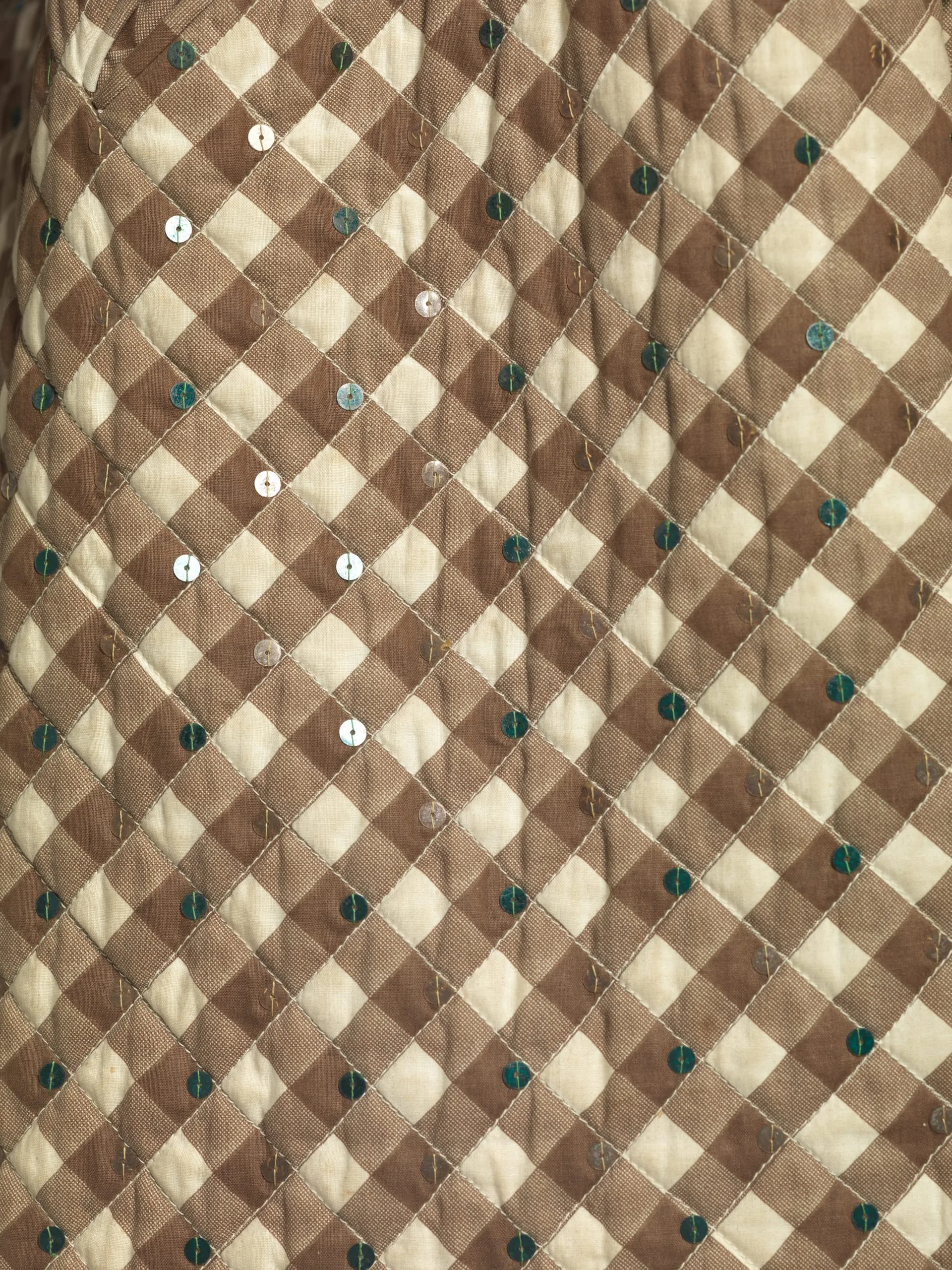 - Cotton plain weave (gingham), quilted, with plastic sequins