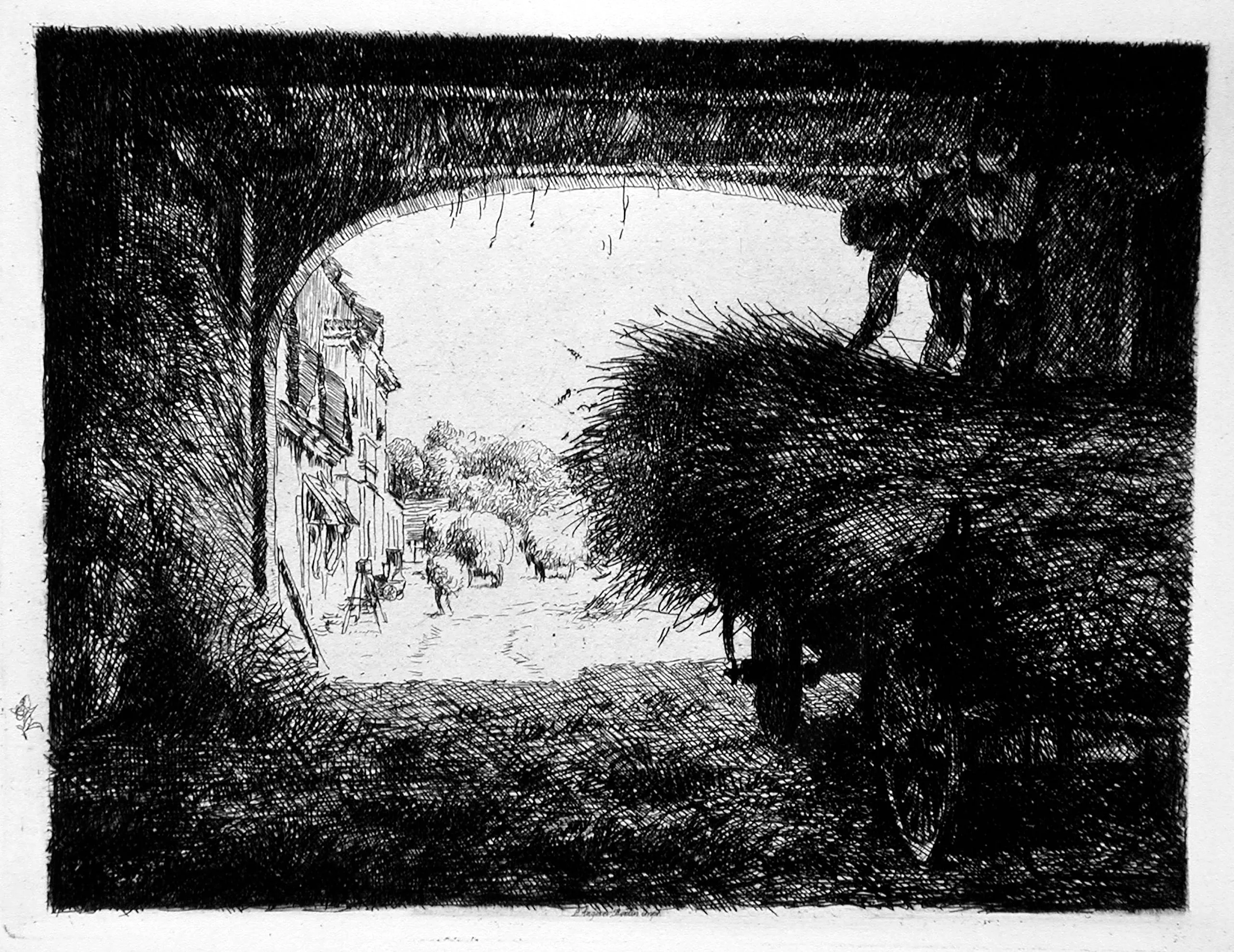 - Etching printed in brown on laid paper