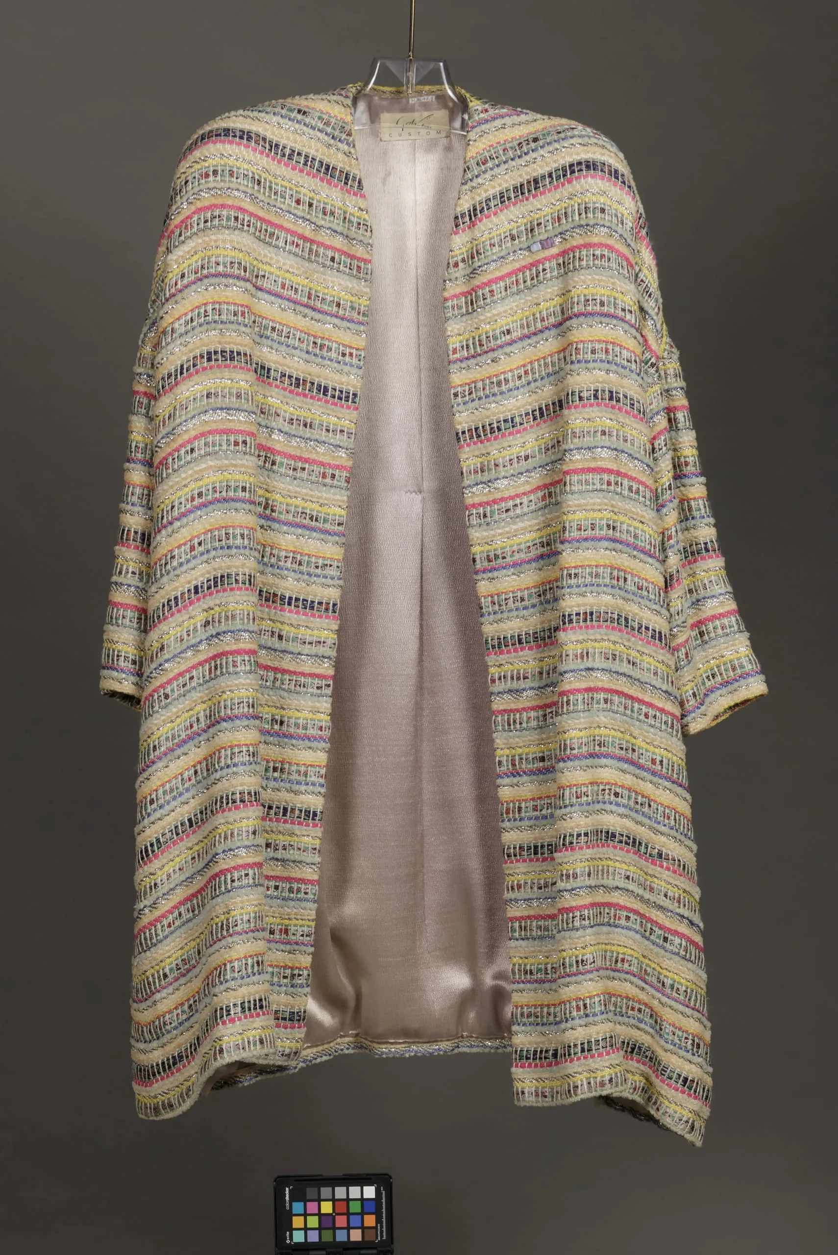 - Handwoven textile with twill structure, of cotton chenille, Lurex, silk/linen braids, silk ribbons