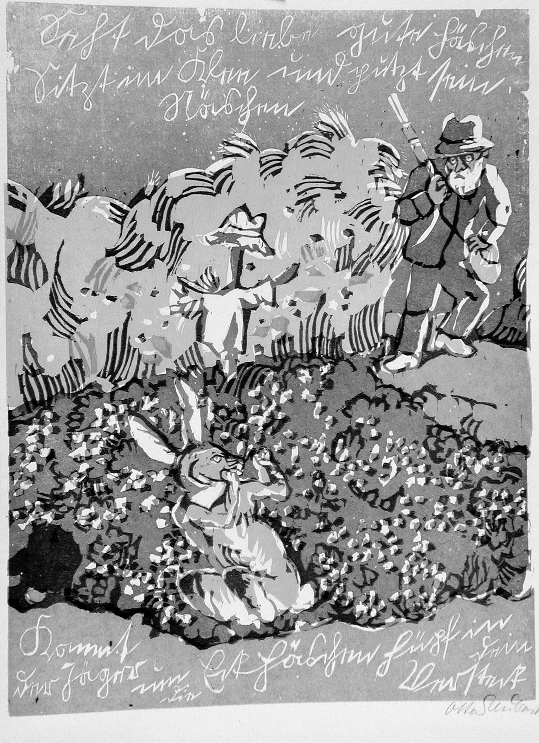 - Woodcut printed in green, red, blue, and yellow on Japan paper