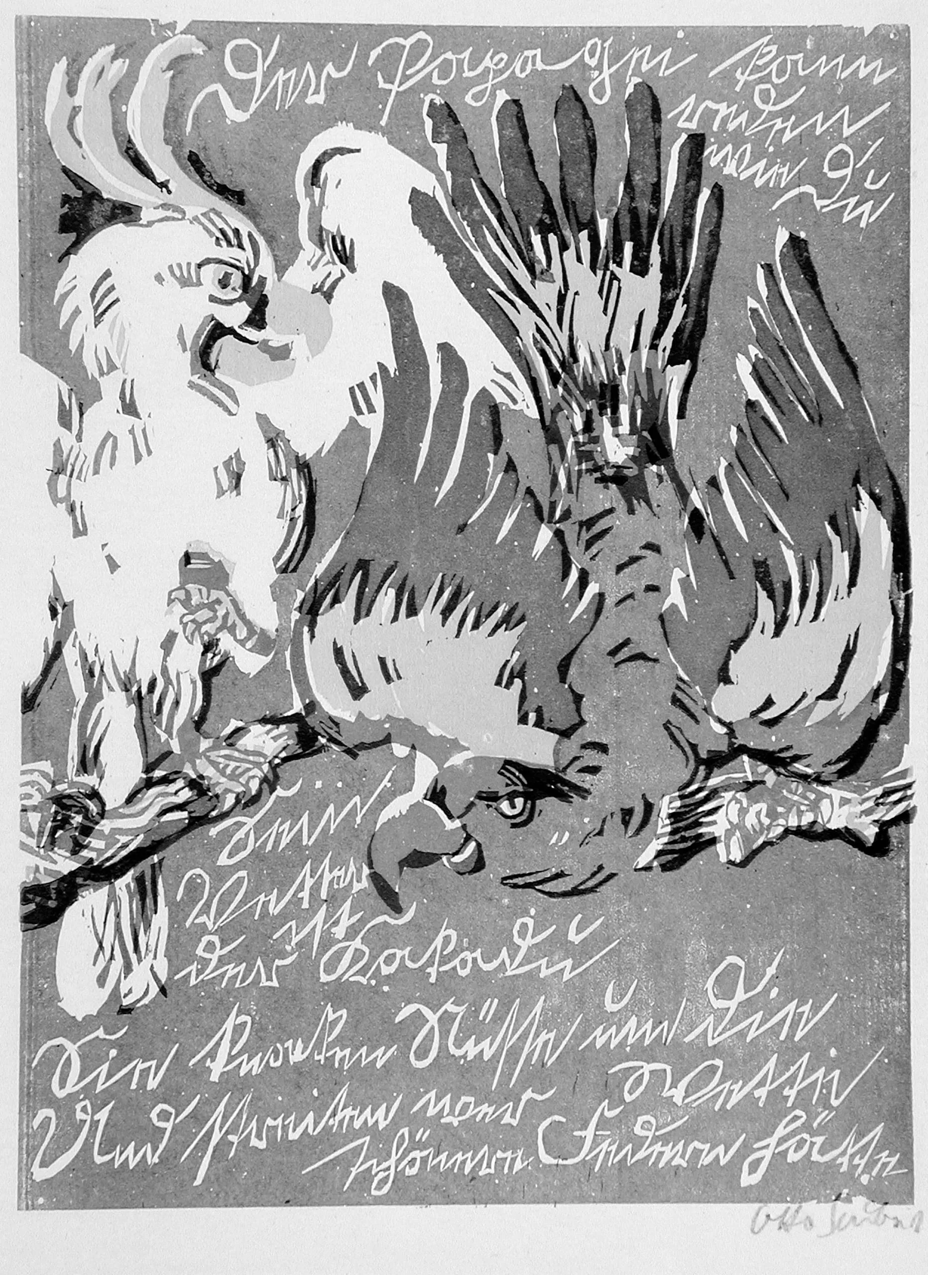 - Woodcut printed in green, red, blue, and yellow on Japan paper