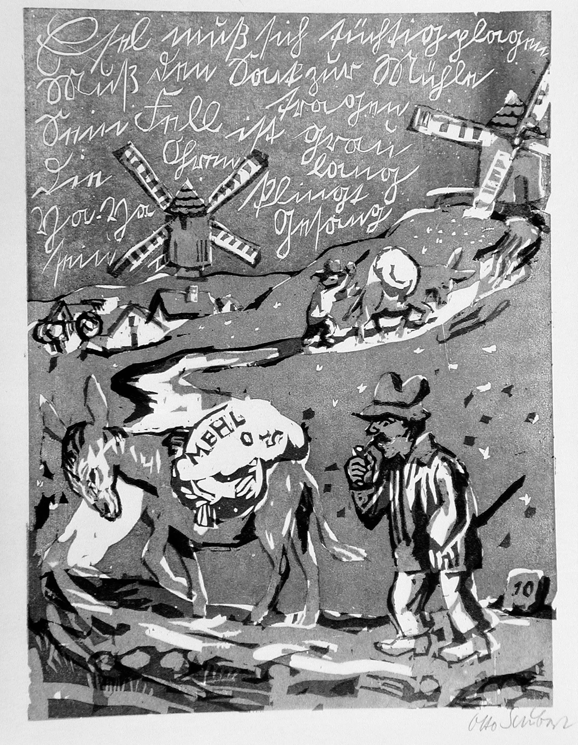 - Woodcut printed in blue, green, brown, and red on Japan paper