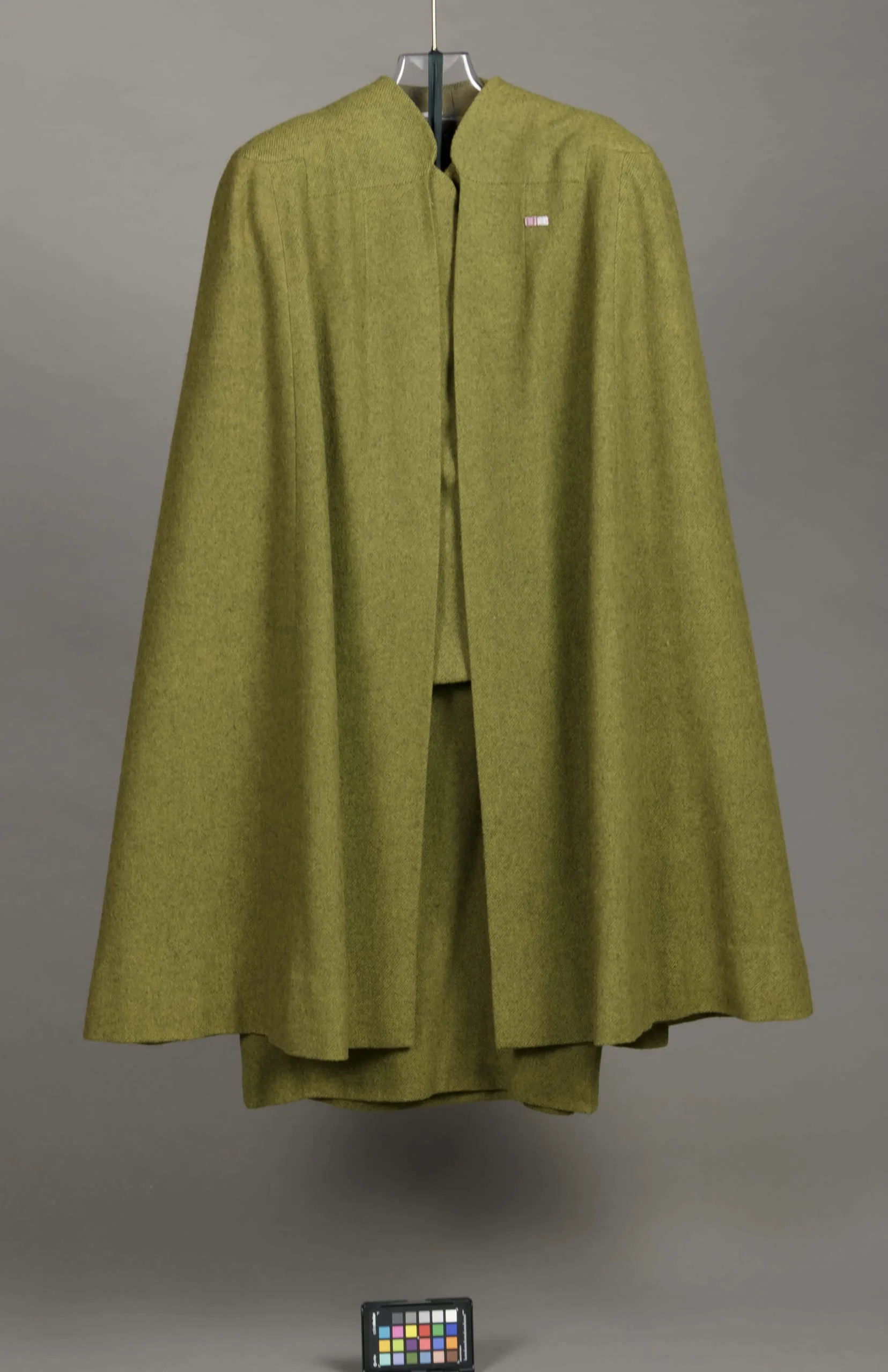 - Cape, Jacket and Skirt: Wool twill, fulled, Dickey: silk knit (jersey)