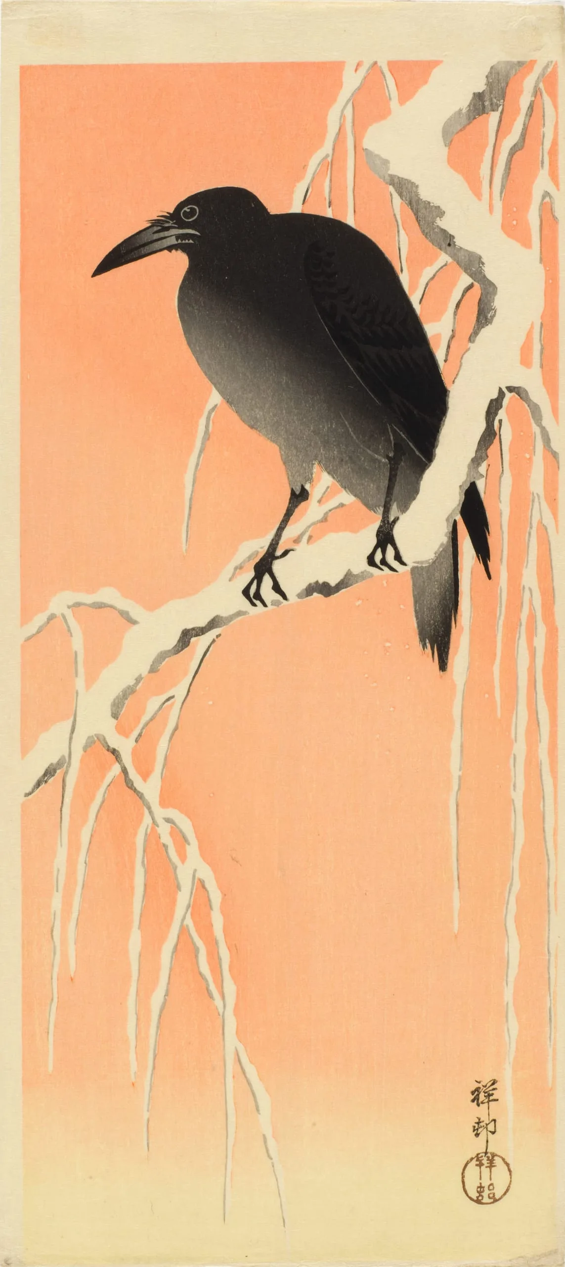 - Crow on Snow-Covered Branch at Dawn