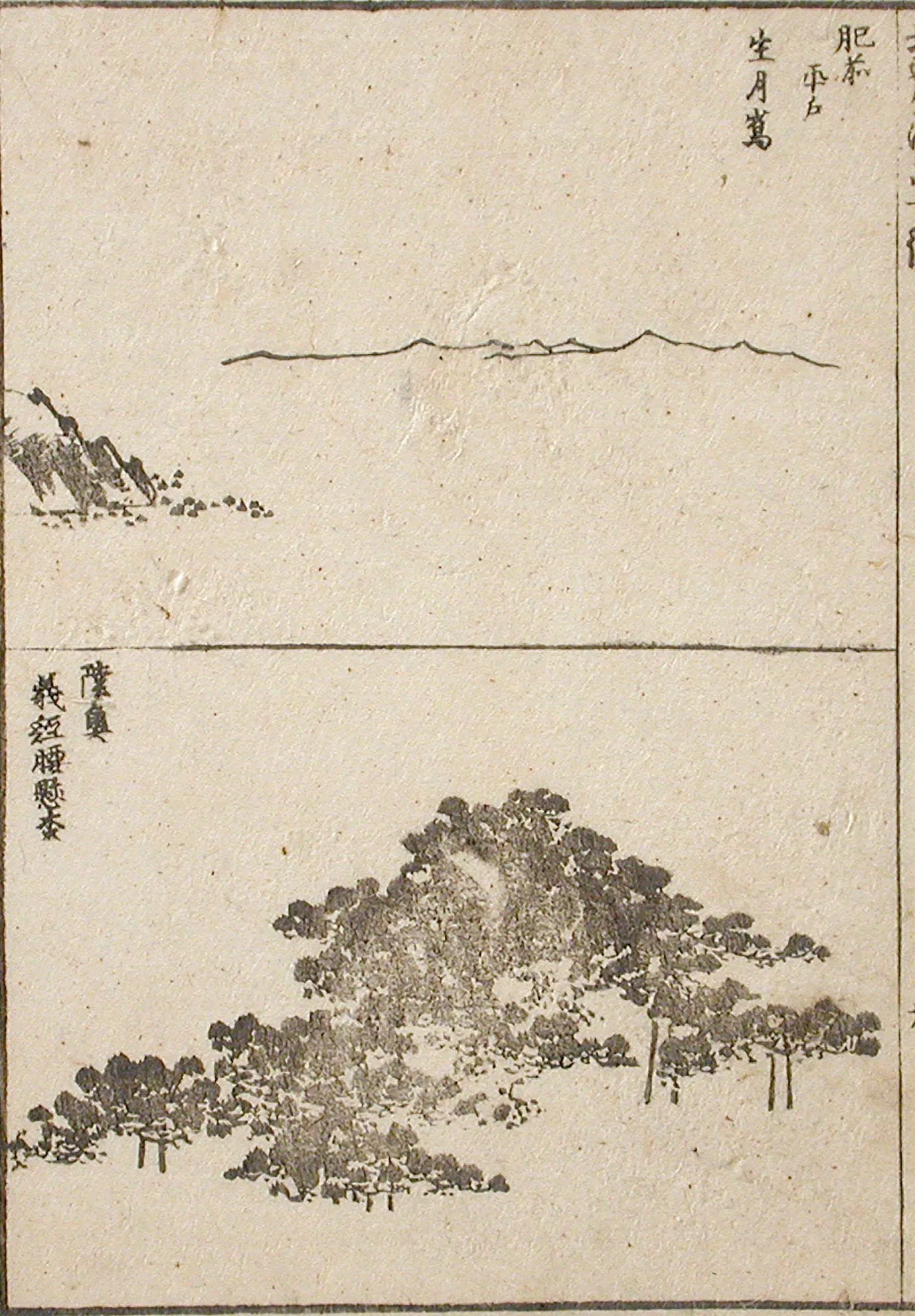 - Seigetsushima (?) in Hirado, Hizen; Great Pine Supported on Poles, Mutsu, from Hokusai Sketchbooks vol. 7, page 18.