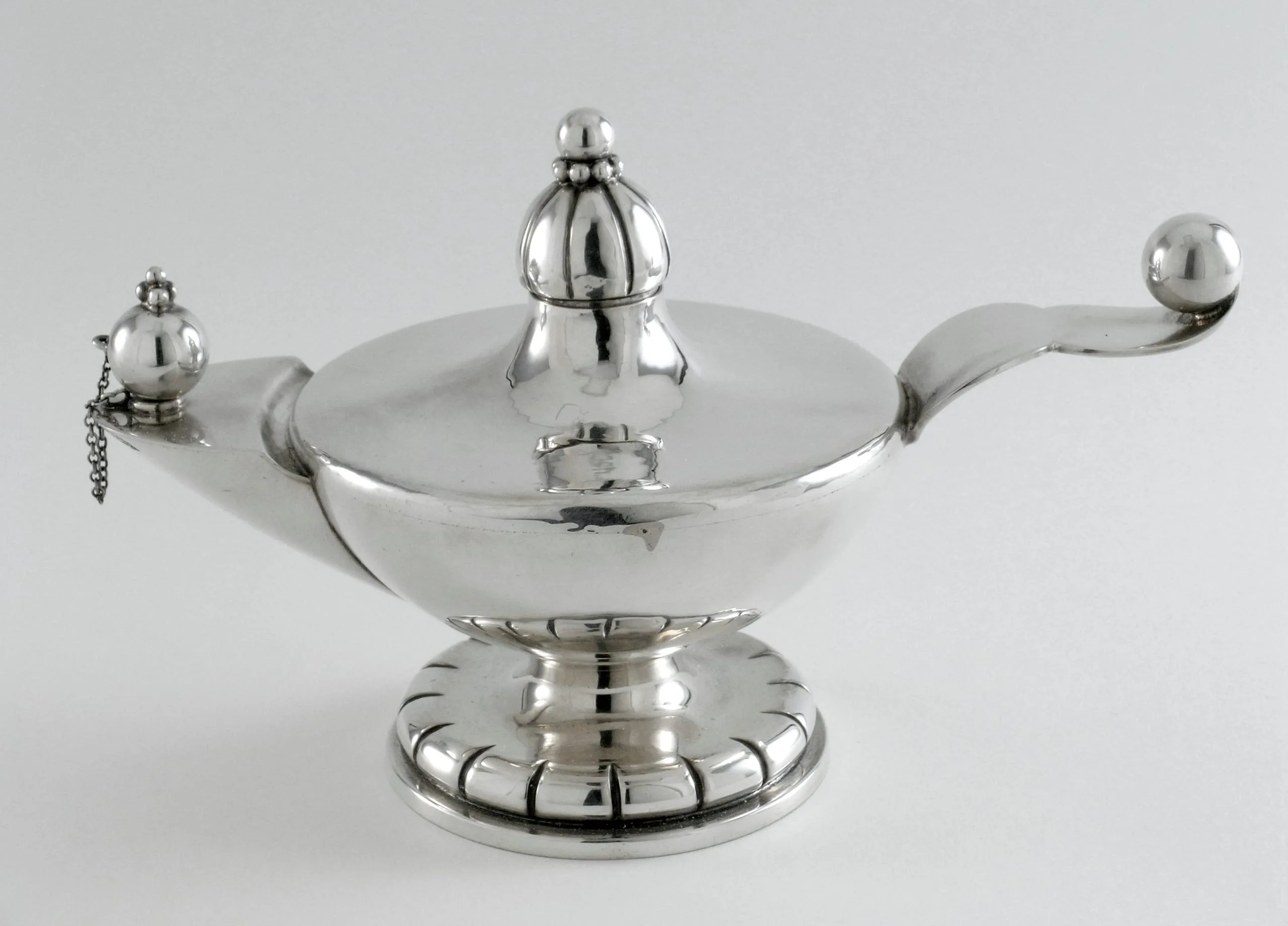 - a) Lamp: 3 1/2 x 7 x 4 in. (8.89 x 17.78 x 10.16 cm); b) Lid height: 1 3/4 in. (4.45 cm); b) Lid diameter: 7/8 in. (2.23 cm); Overall: 4 1/2 x 7 x 4 in. (11.43 x 17.78 x 10.16 cm)