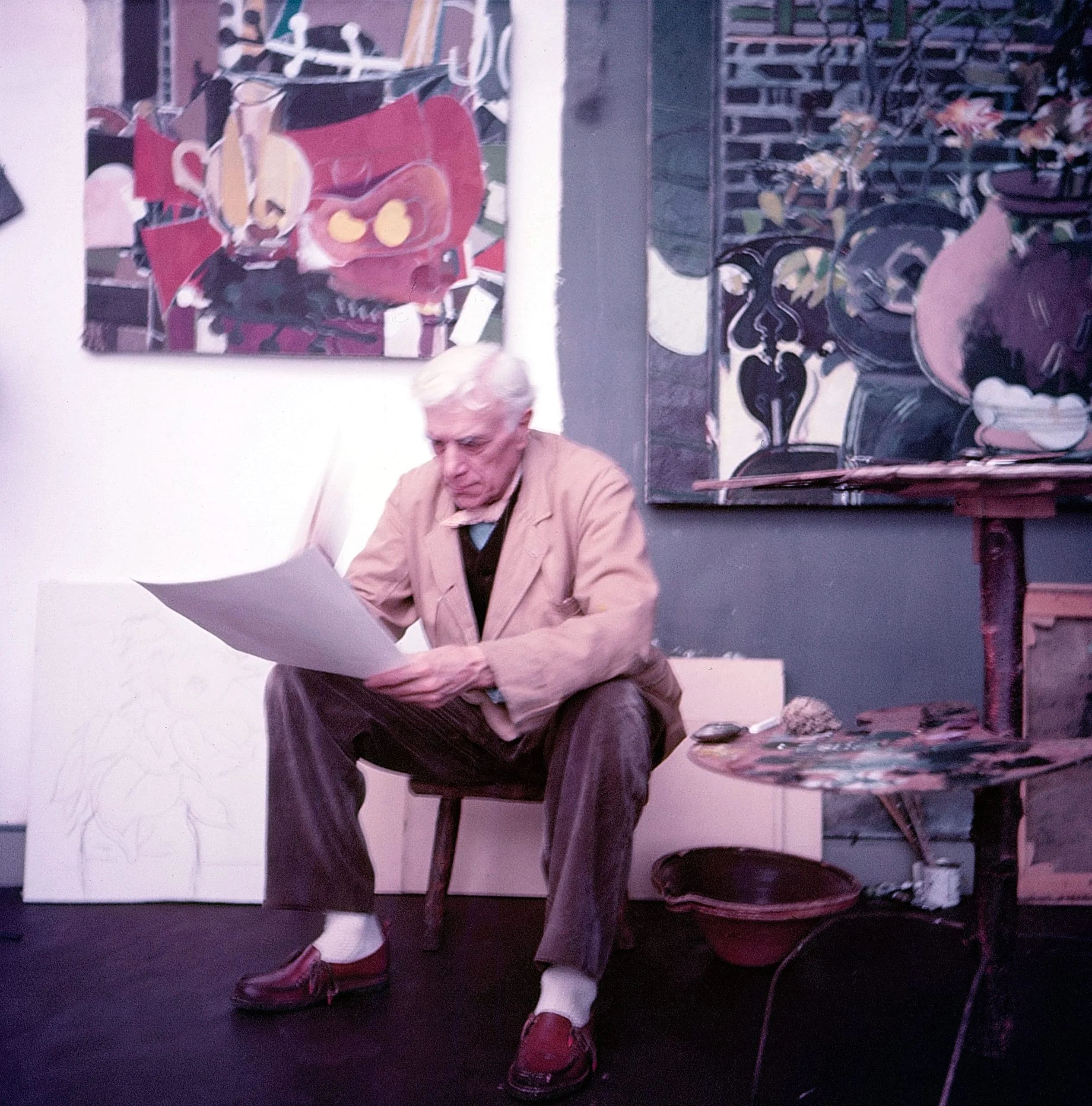 Braque Holding Newspaper