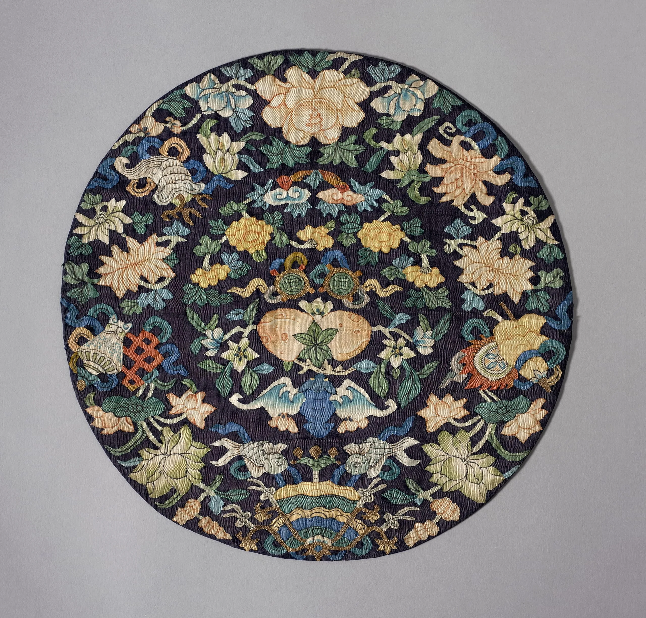 - Roundel with Bat, Peaches and Auspicious Symbols