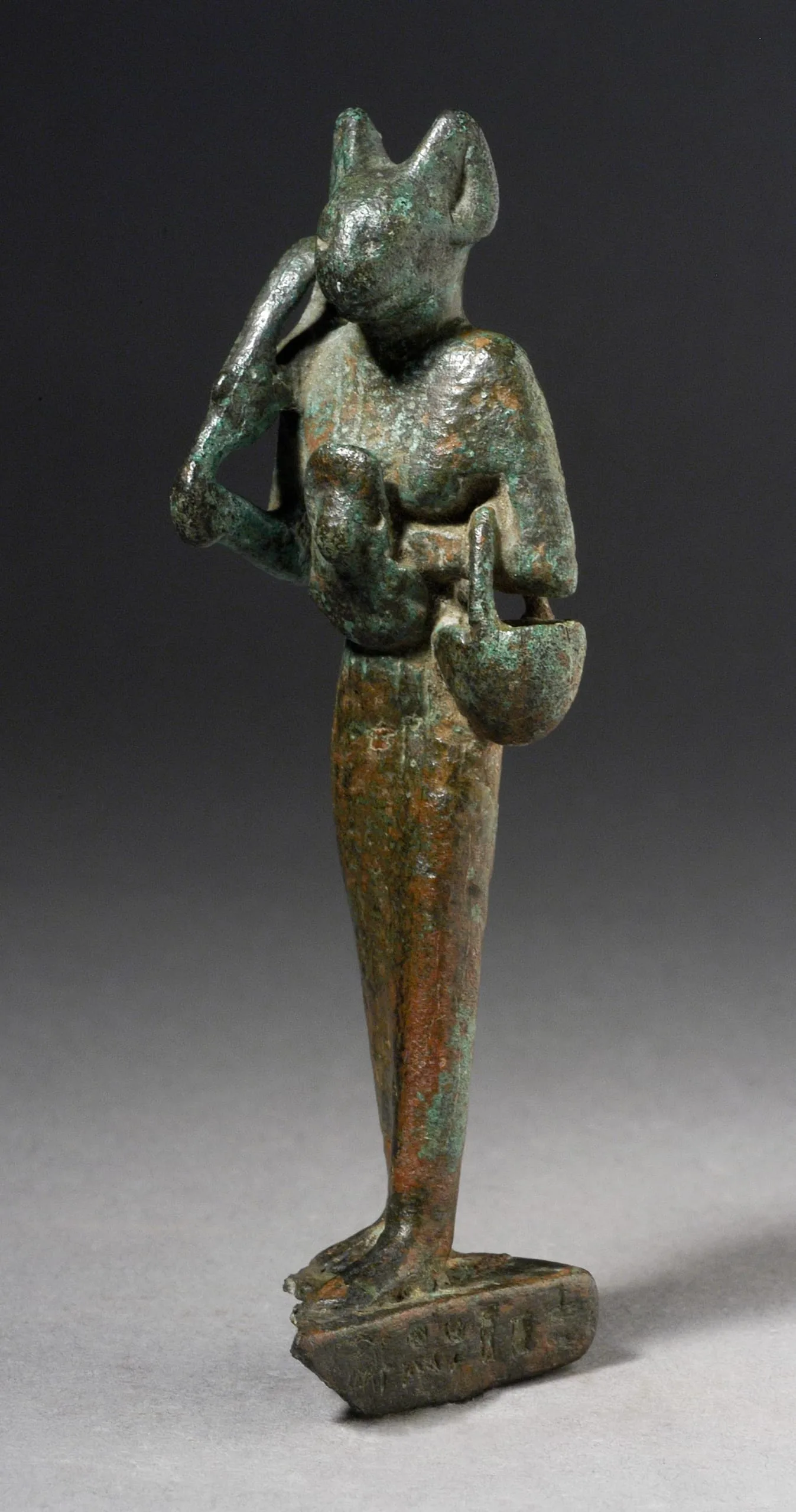Figurine of Standing Cat Headed Goddess with Sistrum