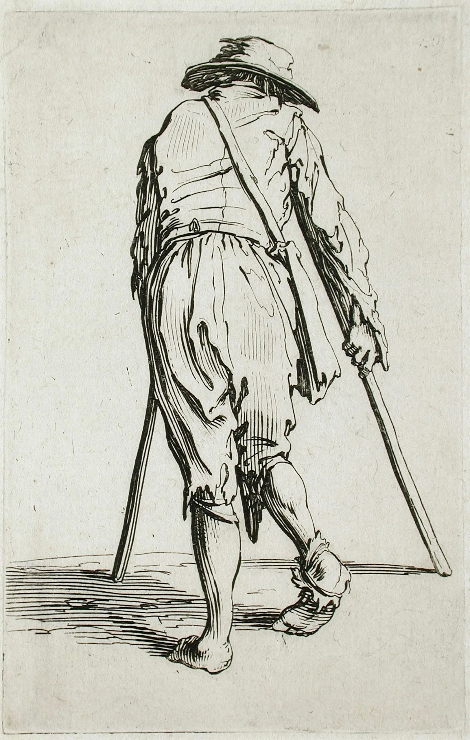 - Beggar on Crutches, Wearing a Cap, Seen from the Back