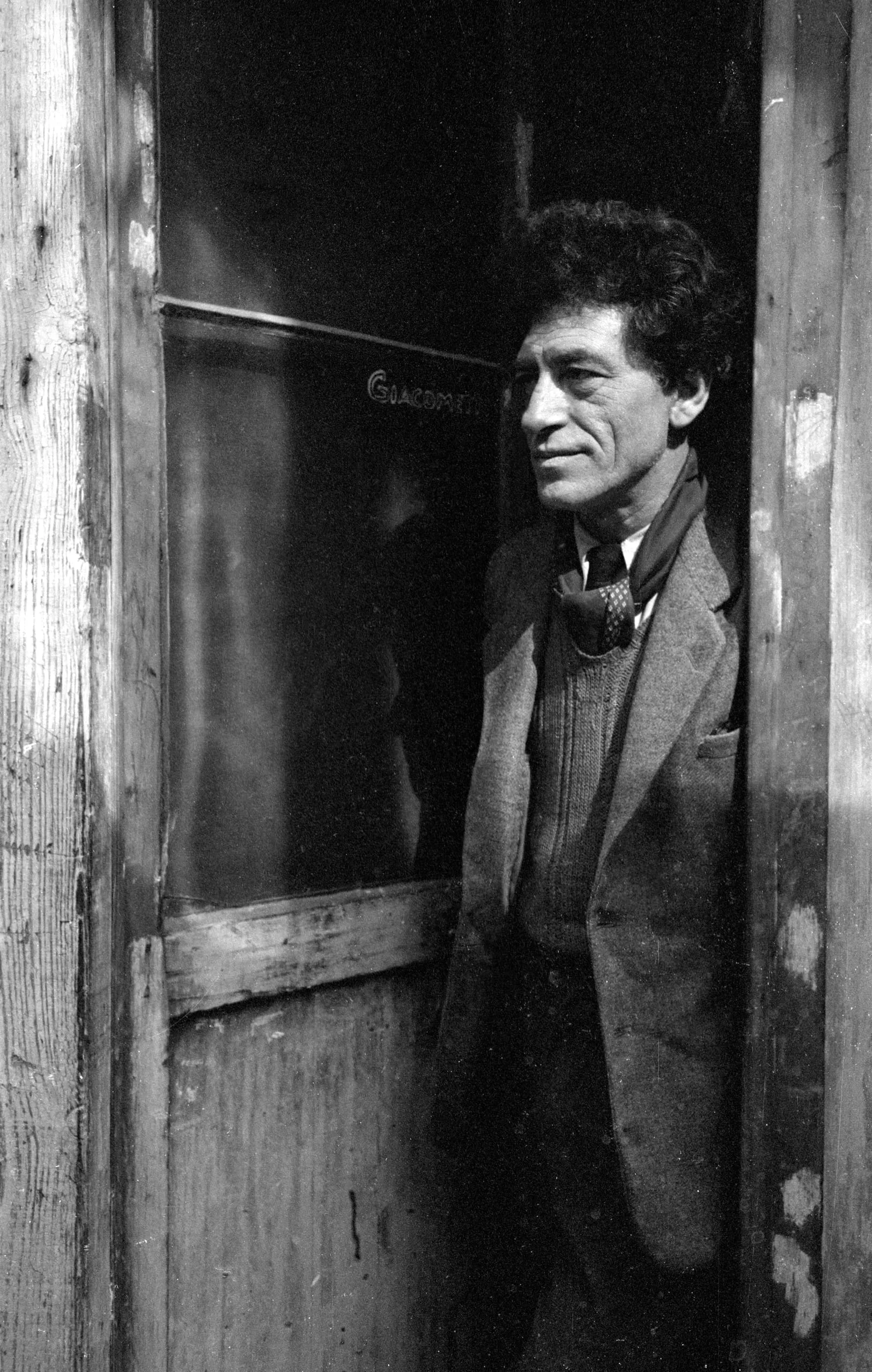 Black and white photograph, a man in a tweed blazer and loosened tie leaning in a weathered wooden doorway, lit from the right, looking toward the camera