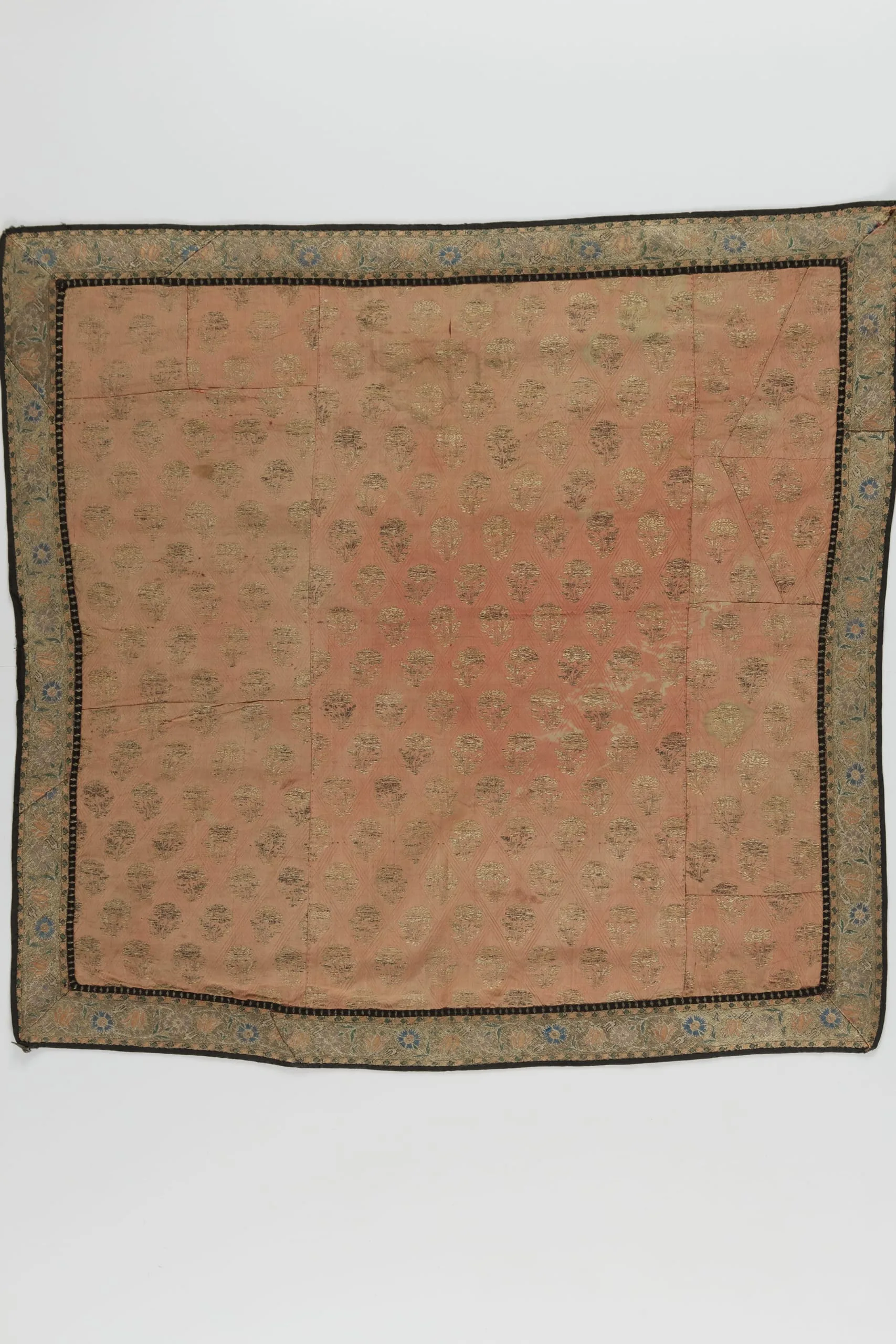 - Silk plain weave, stamped, with metallic-thread discontinuous supplementary-weft patterning (brocade), with silk and metallic-thread plain weave with silk supplementary-weft patterning bound in plain weave (lampas)