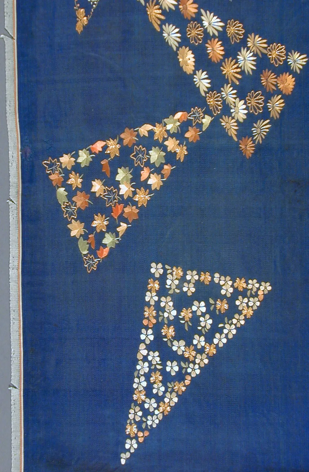 - Silk satin with silk- and and gilt-paper-wrapped-silk-thread embroidery