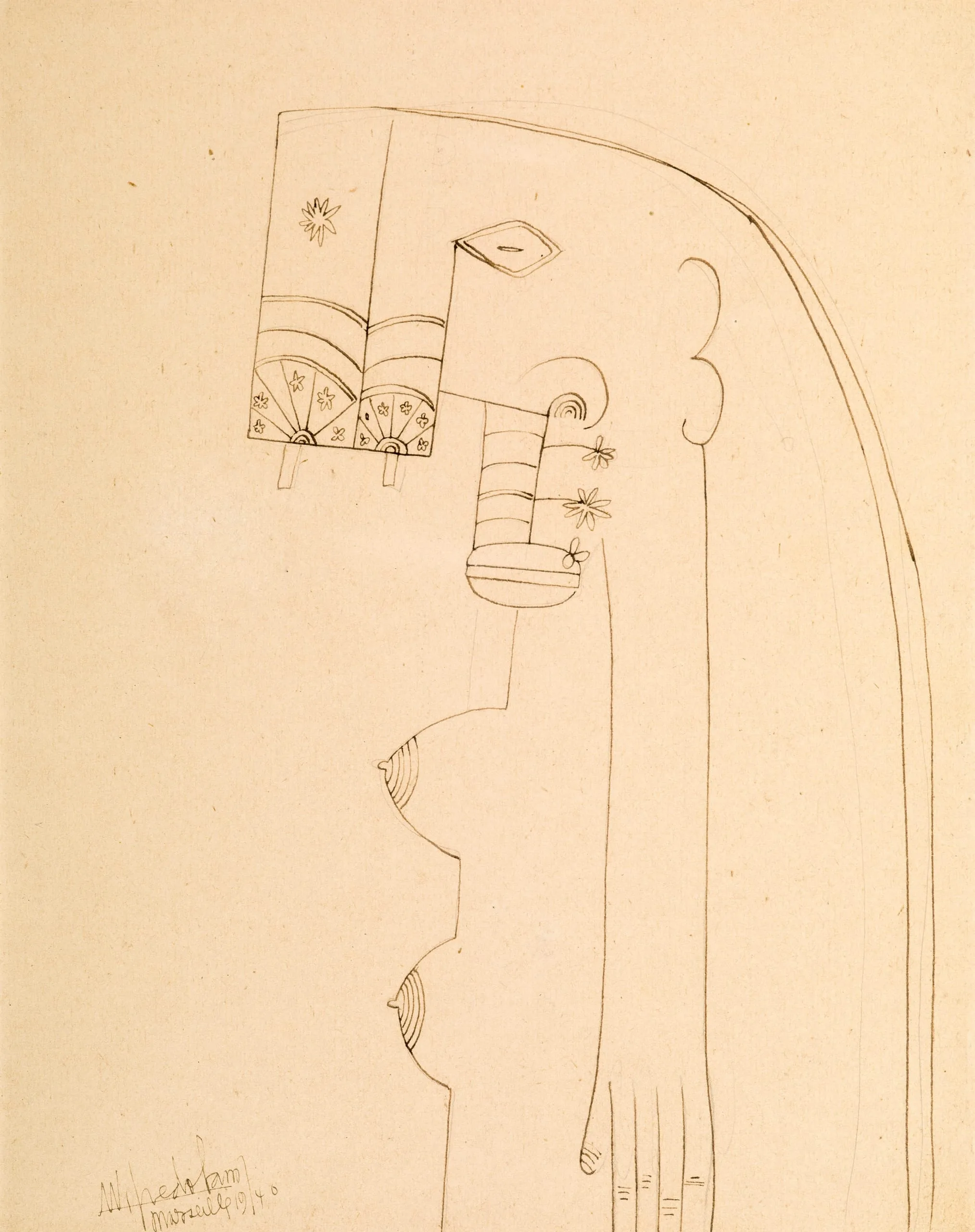 During Wifredo Lam's stay in Marseille from 1940 to 1941, while he awaited passage out of France, the artist produced four or five drawings a day. Conceived as studies for André Breton's poem Fata Morgana, they fuse cubist and surrealist styles. The drawings document the enormous anxiety of other artists also waiting to escape France. In them, Lam developed the motif of the femme cheval, or horse-headed female, the curious hybrid being that would become one of Lam's signature images, and which derives from his interest in the Afro-Cuban religion Santería and in the work of Picasso and Matisse. Ilona Katzew, 2008