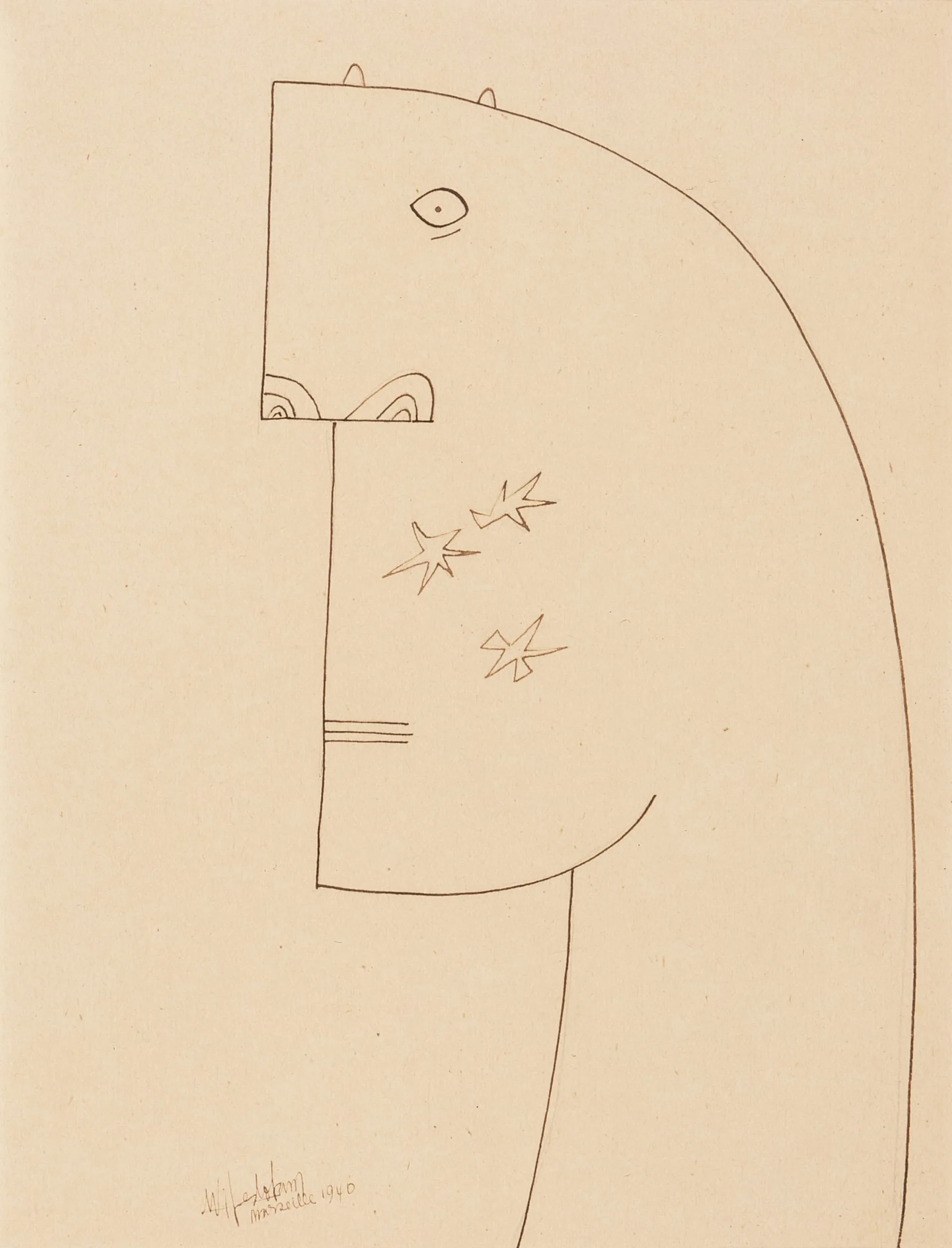 During Wifredo Lam's stay in Marseille from 1940 to 1941, while he awaited passage out of France, the artist produced four or five drawings a day. Conceived as studies for André Breton's poem Fata Morgana, they fuse cubist and surrealist styles. The drawings document the enormous anxiety of other artists also waiting to escape France. In them, Lam developed the motif of the femme cheval, or horse-headed female, the curious hybrid being that would become one of Lam's signature images, and which derives from his interest in the Afro-Cuban religion Santería and in the work of Picasso and Matisse. Ilona Katzew, 2008