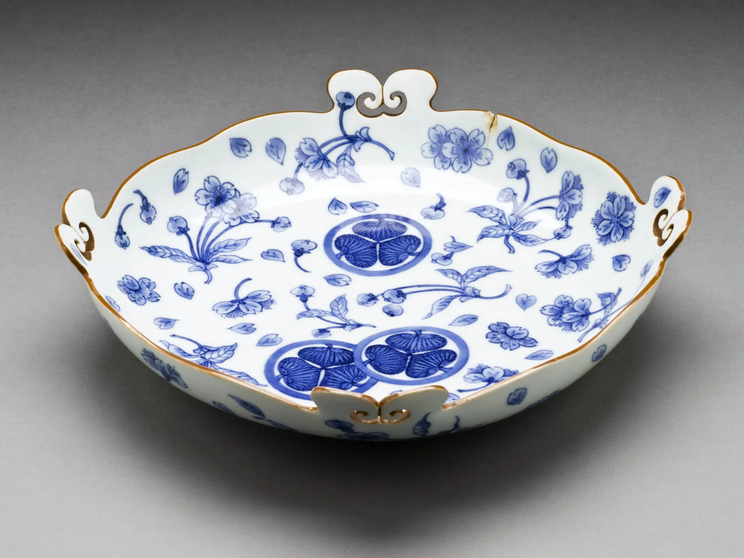 - Bowl with Hollyhock Crests and Cherry Blossoms