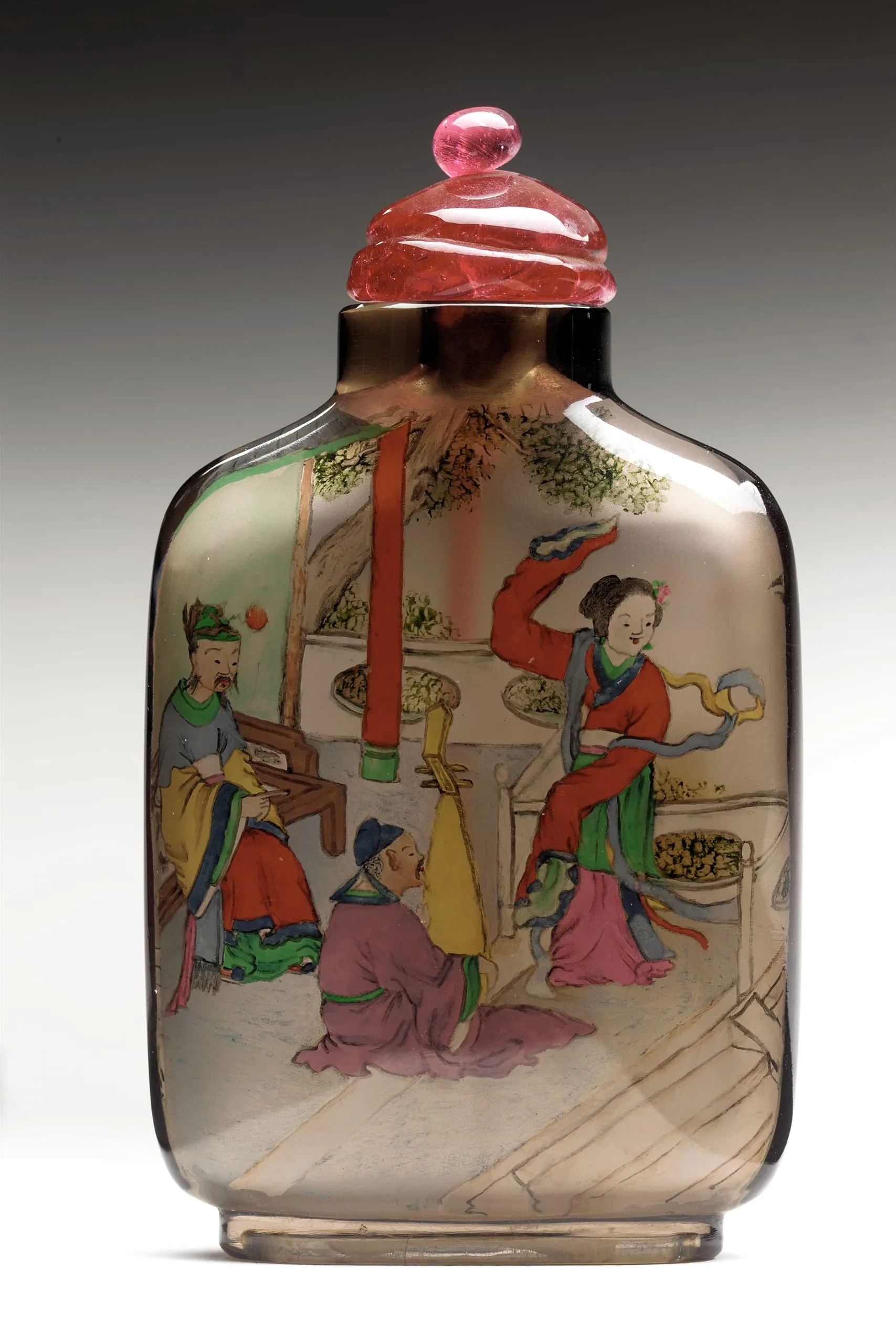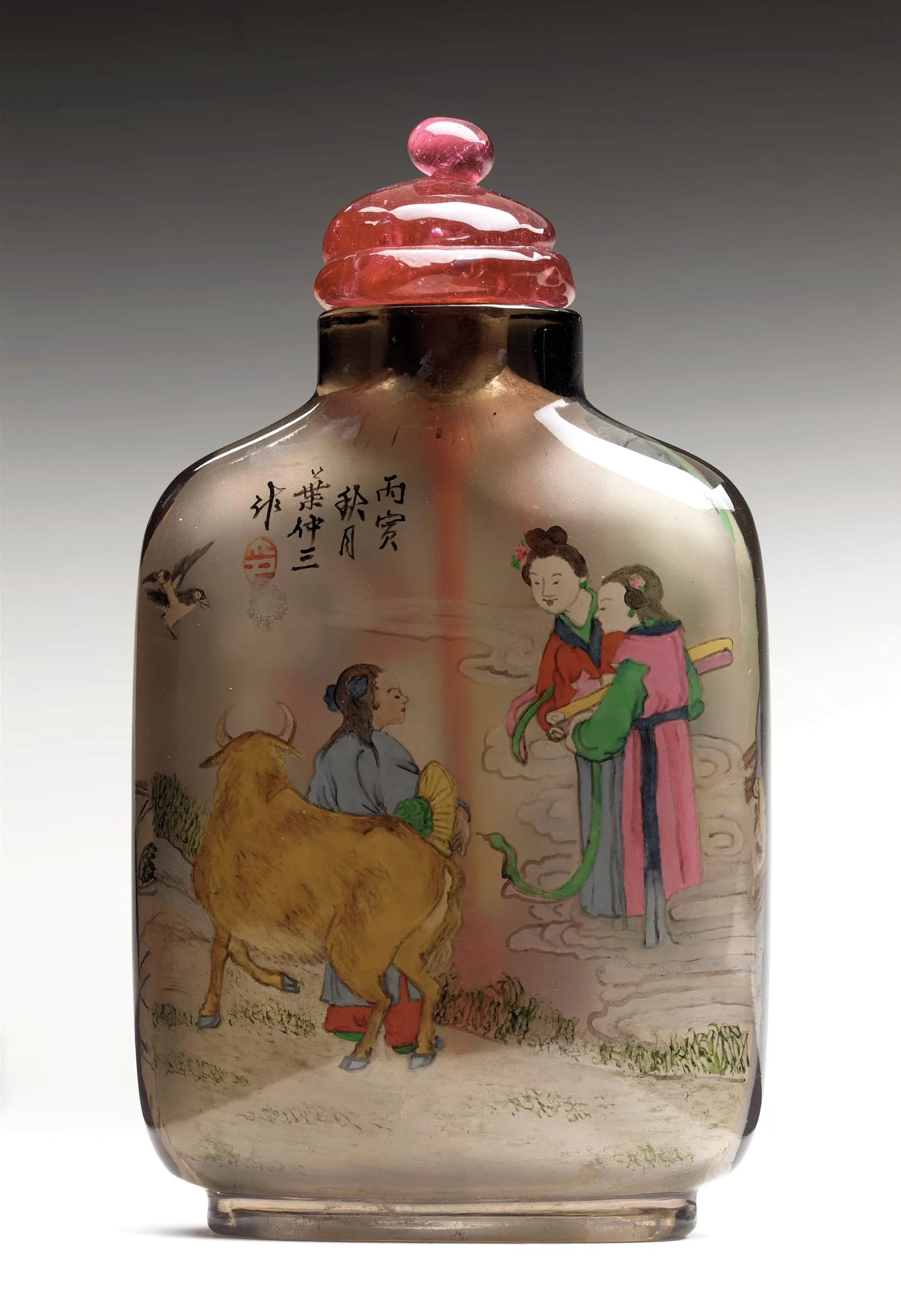 - Carved smoky quartz with inside painted decoration
