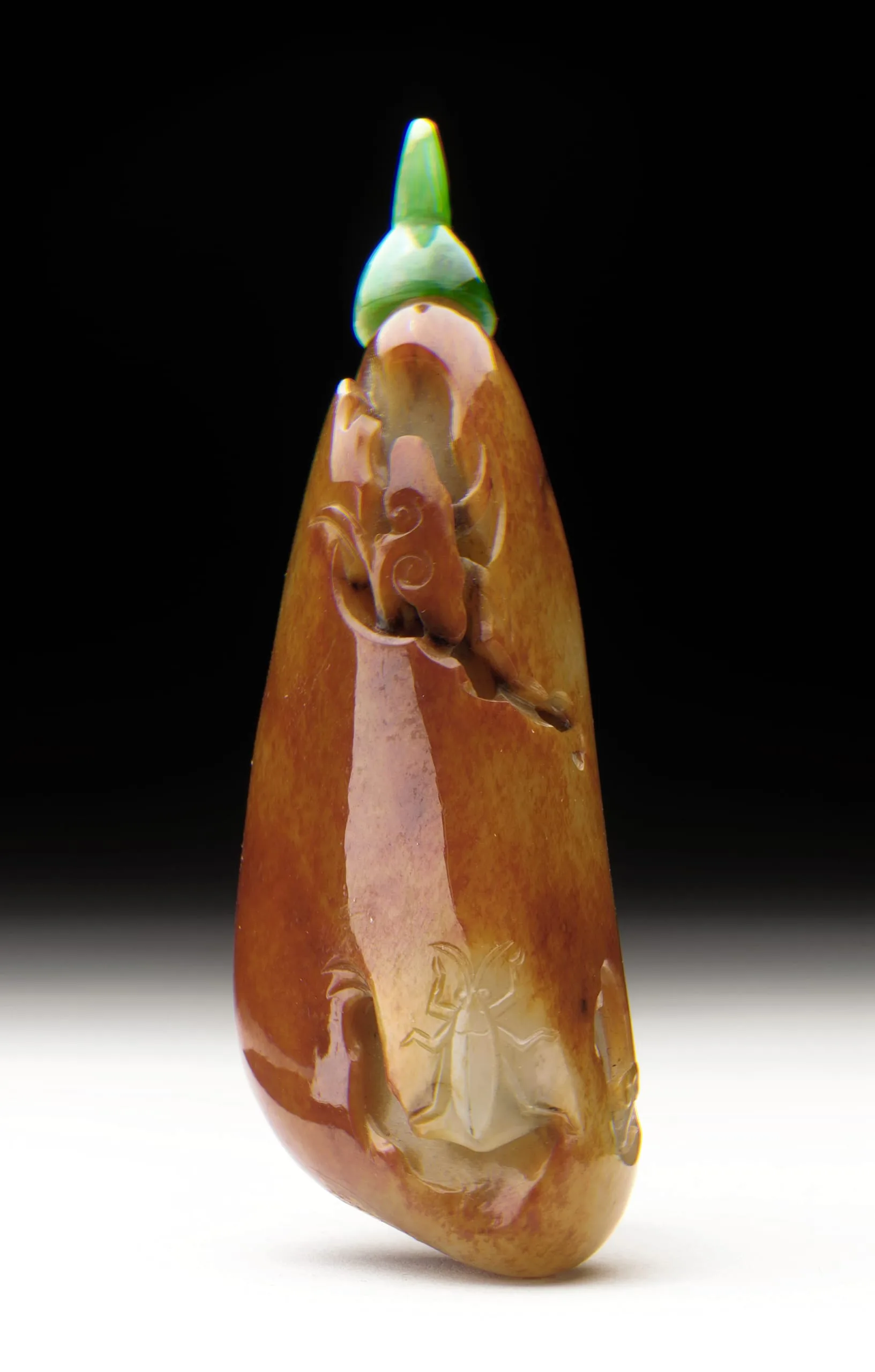 - Pebble Form Snuff Bottle (Biyanhu) with Insects and Lingzhi Fungus