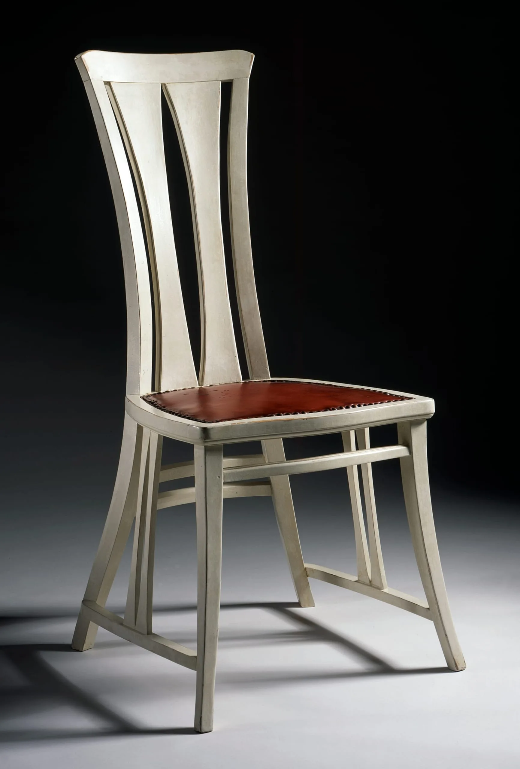 - Painted poplar, leather, silver-plated brass