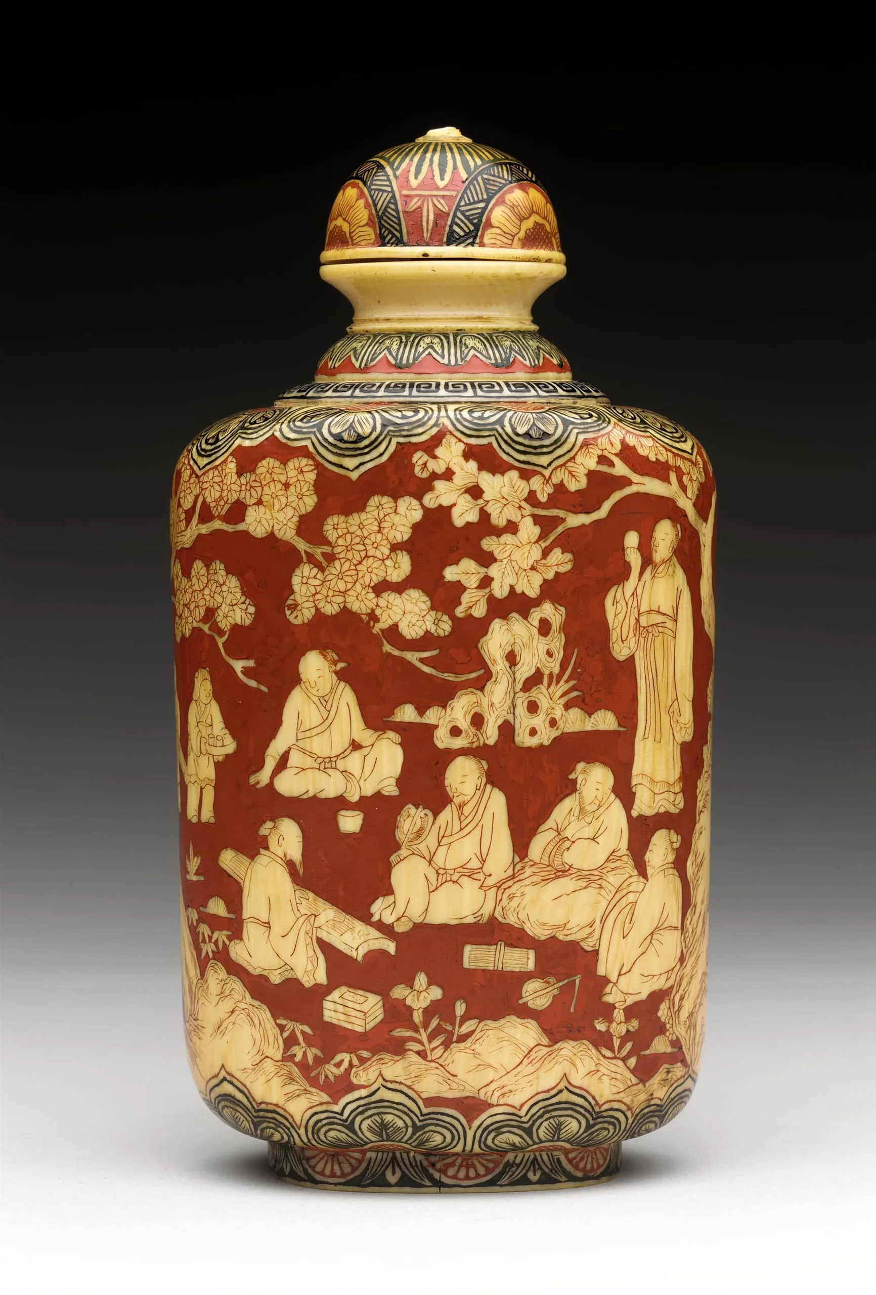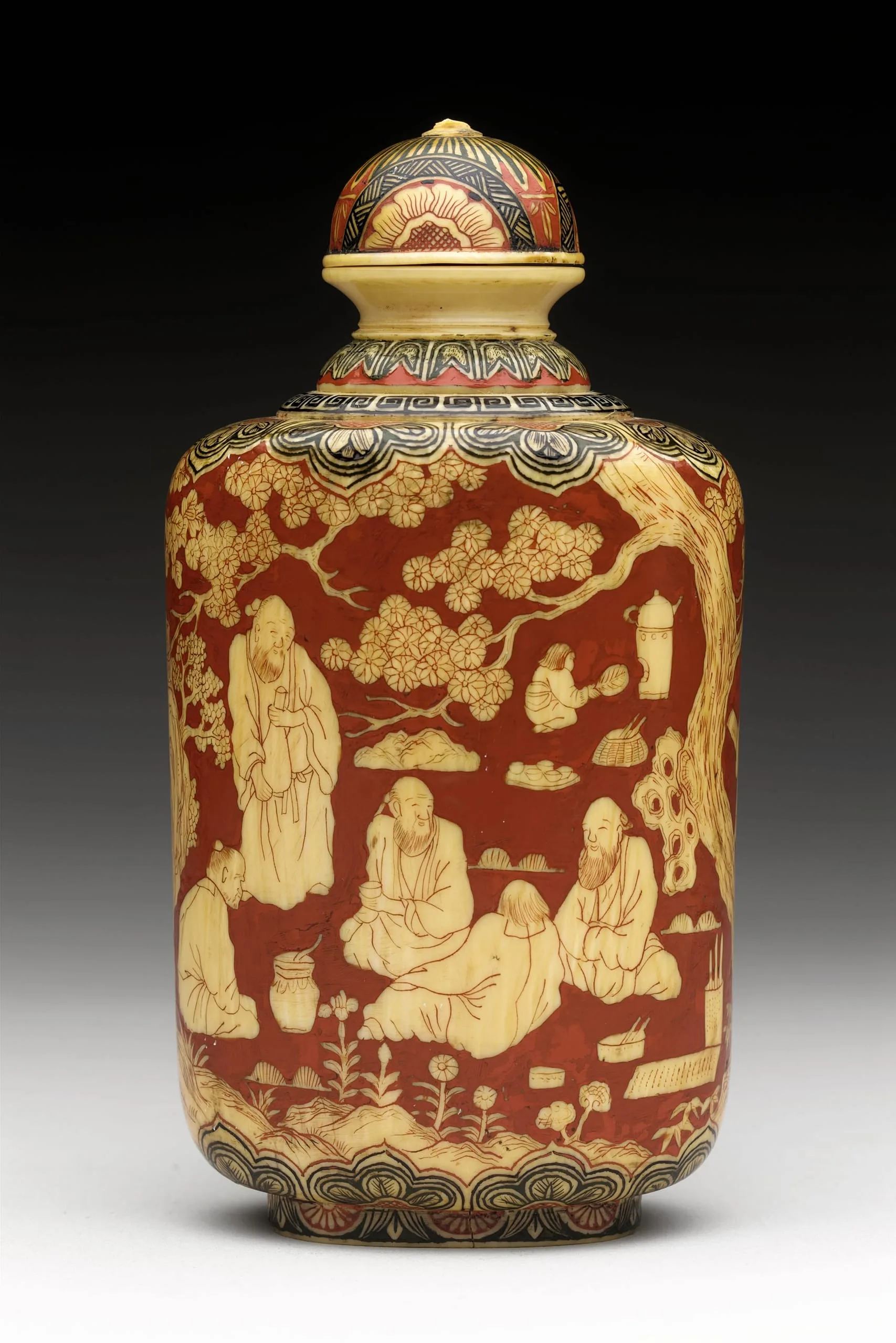 - Snuff Bottle (Biyanhu) with Scholars in Garden