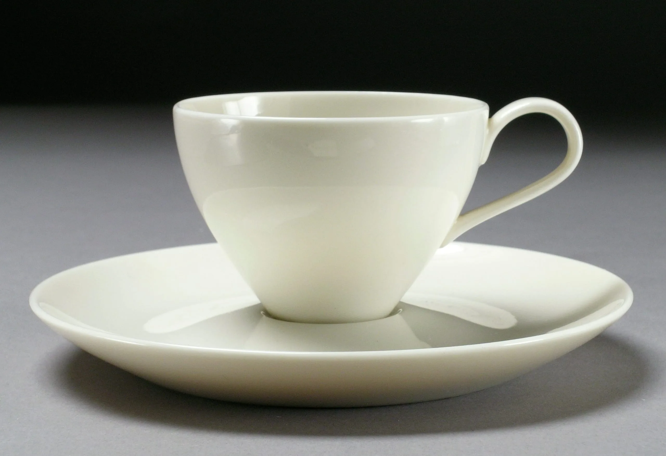 - a) Demitasse cup: 2 x 3 5/8 x 2 3/4 in. (5.08 x 9.21 x 6.99 cm); b) Saucer: 3/4 x 5 3/8 in. (1.91 x 13.65 cm)